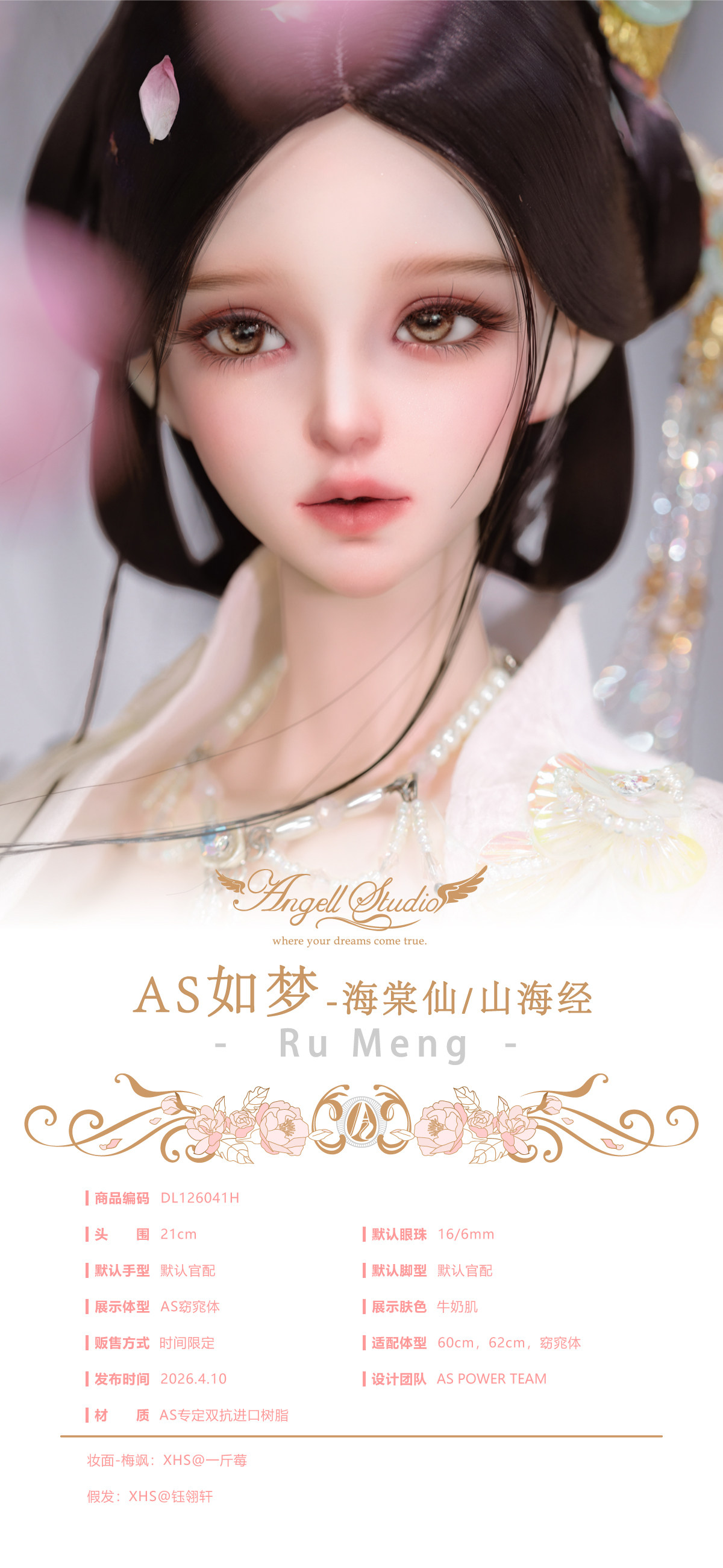 AS如梦-海棠仙/山海经 DL126041H BJD娃娃 AS天使工房 3分女娃